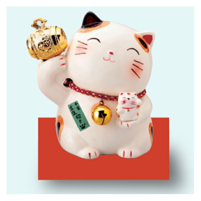 手作りで作られた置物です。家に飾ったり、プレゼントにも最適です! ギフト プレゼント 贈り物 お中元 敬老の日 お茶 猫 置物【金小槌猫貯金箱(猫)】