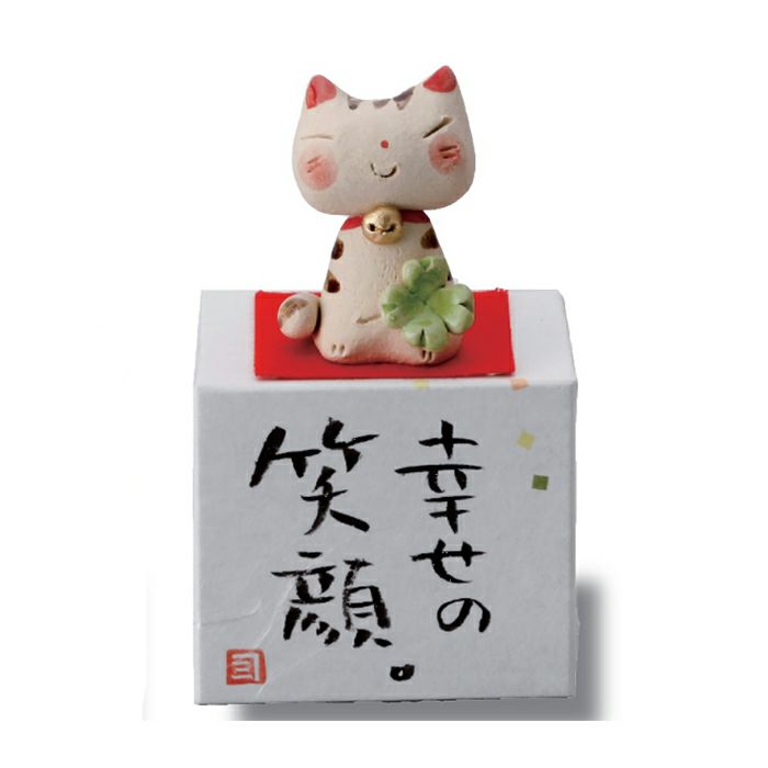 手作りで作られた置物です。家に飾ったり、プレゼントにも最適です! ギフト プレゼント 贈り物 お中元 敬老の日 お茶 箱飾り猫(四葉) 置物【幸せの笑顔。】
