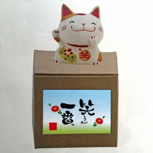 手作りで作られた置物です。家に飾ったり、プレゼントにも最適です! ギフト プレゼント 贈り物 お中元 敬老の日 お茶 猫 置物【笑うが一番(猫)】