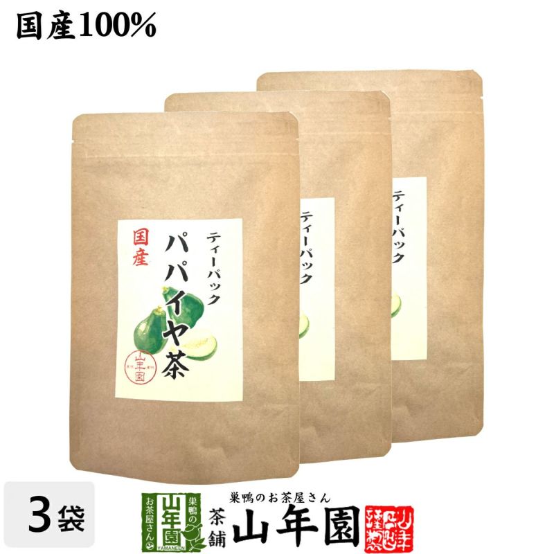 宮崎の農園で栽培中農薬不使用で丁寧に育てた青パパイヤで美味しいパパイヤティーを作りました。 またお湯を注いですぐに飲める便利なティーバッグでご用意しました。 ノンカフェインなのでお子様や妊婦の方もお召し上がりいただけます。当店の「パパイヤ茶」は山年園限定です。 老舗のお茶屋がこだわり抜いた「パパイヤ茶」を是非ご賞味ください。