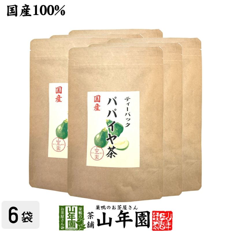 宮崎の農園で栽培中農薬不使用で丁寧に育てた青パパイヤで美味しいパパイヤティーを作りました。 またお湯を注いですぐに飲める便利なティーバッグでご用意しました。 ノンカフェインなのでお子様や妊婦の方もお召し上がりいただけます。当店の「パパイヤ茶」は山年園限定です。 老舗のお茶屋がこだわり抜いた「パパイヤ茶」を是非ご賞味ください。