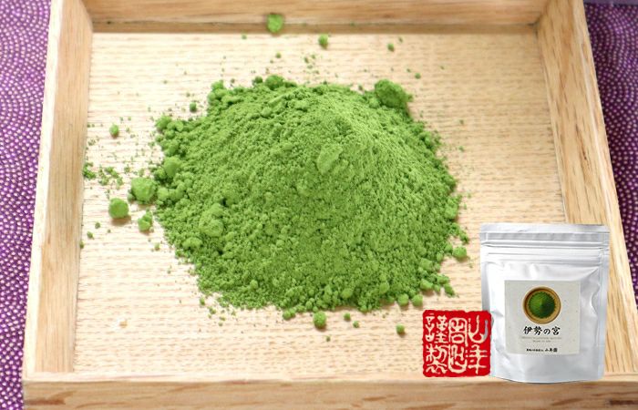 豊かな自然と清らかな水に育まれた三重県の茶葉を厳選し、丁寧に石臼で挽き上げた抹茶「伊勢の宮」。