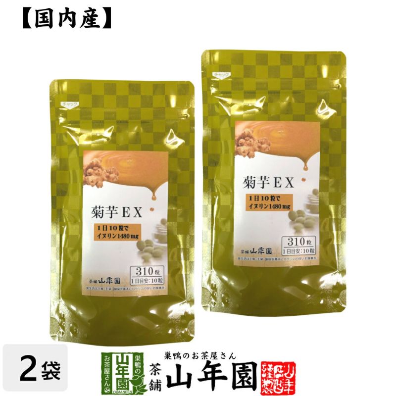 天然のインシュリンとも呼ばれる「イヌリン」を豊富に含んだ菊芋をサプリメントにしました! 菊芋に含まれるイヌリンをキュッと凝縮させ、10粒で約1480mgが摂取できます。安心安全に飲めるように、国産100%の原材料を栽培している生産者の方々が厳選し、明確な原料を使用しています。お子様や妊婦の方も安心して飲めるように、ノンカフェインにこだわりました。 当店の「菊芋EX」は山年園限定です。 老舗のお茶屋がこだわり抜いた「菊芋皮EX」を是非ご賞味ください。