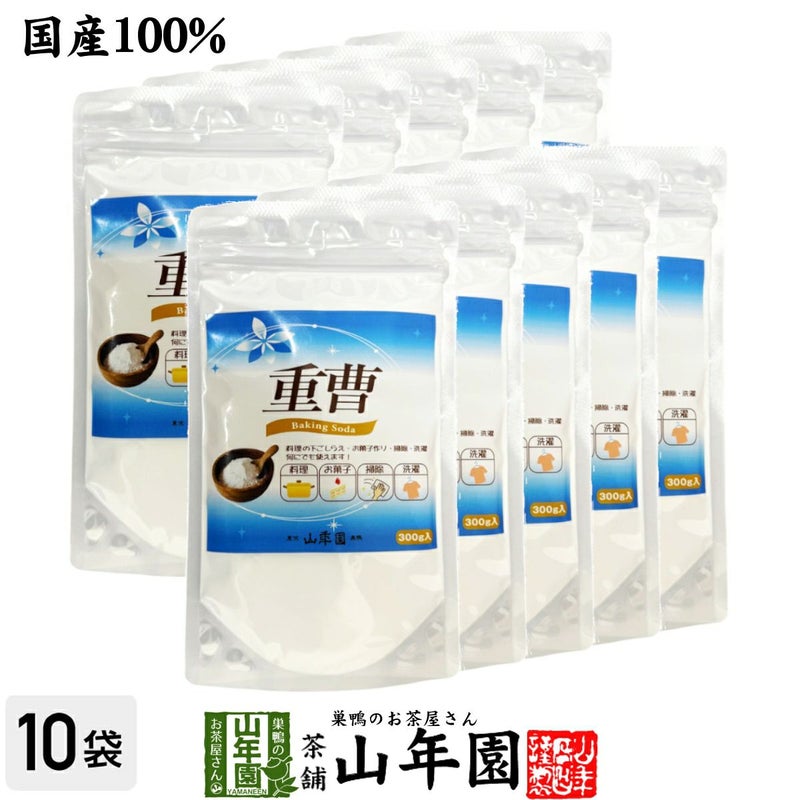 【山年園限定】パンやケーキ、お菓子にご利用いただける重曹 掃除、洗濯にも ギフト プレゼント 贈り物 お茶 国産 重曹 300g×10袋セット