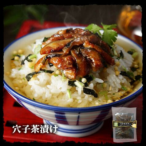 | 使用方法 | 【穴子茶漬けとして】 温かいご飯の上に穴子と具材をのせ、熱湯とだしつゆをかけて召し上がりください。お好みにより熱湯の量は加減して下さい。わさびを添えるなどお好みに合わせて工夫して頂きますと、一層美味しく召し上がり頂けます。 【穴子めし(炊き込みごはん)として】 ご飯1合に穴子とだしつゆを入れて頂き、炊飯器のスイッチを入れ炊き上げ添付の具材をふりかけて、よく混ぜて召し上がり下さい。 |