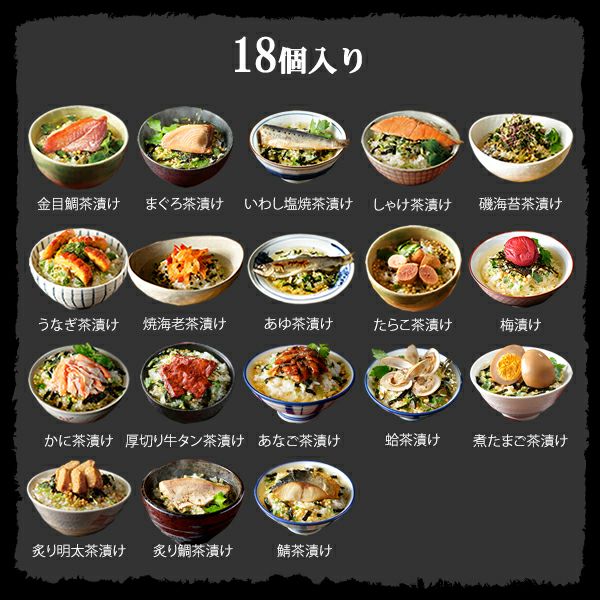 他の画像を見る 【高級 ギフト】大人気の高級お茶漬けセット+お茶碗のセット 常温保存可能 出産内祝い お返し 送料無料 誕生日プレゼント 女性 男性 母 父 ギフト お祝い 食品 【高級ギフト】【お茶碗と高級お茶漬け 18食入りセット】金目鯛、まぐろ、鰻、鮭、いわし、磯海苔、焼海老、鮎、鱈子、梅、蟹、厚切り牛タン、穴子、蛤、帆立、炙り明太子、鯖、炙り鯛 宅配便 ¥ 12,800 税込 詳細を見る お気に入りに登録する (0)