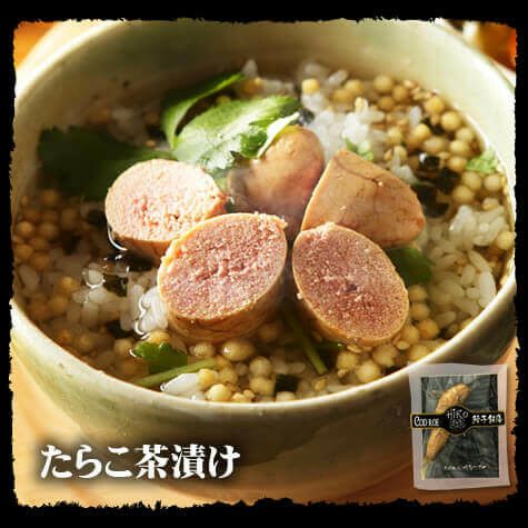 | 使用方法 | 【鱈子茶漬けとして】 温かいご飯の上に鱈子と具材をのせ、熱湯とだしつゆをかけて召し上がりください。お好みにより熱湯の量は加減して下さい。わさびを添えるなどお好みに合わせて工夫して頂きますと、一層美味しく召し上がり頂けます。 【鱈子めし(炊き込みごはん)として】 ご飯1合に鱈子とだしつゆを入れて頂き、炊飯器のスイッチを入れ炊き上げ添付の具材をふりかけて、よく混ぜて召し上がり下さい。 |