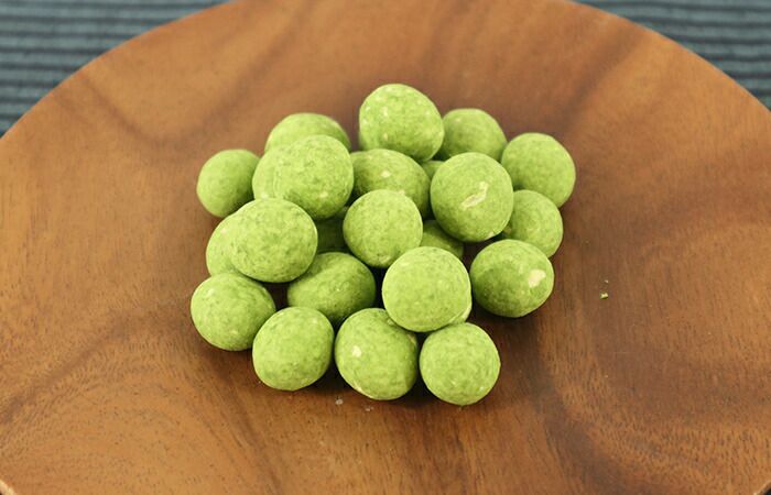 福岡県産八女茶を使用した「抹茶の実」は口どけふんわり、歯ざわりサクサクのお豆のスイーツ。