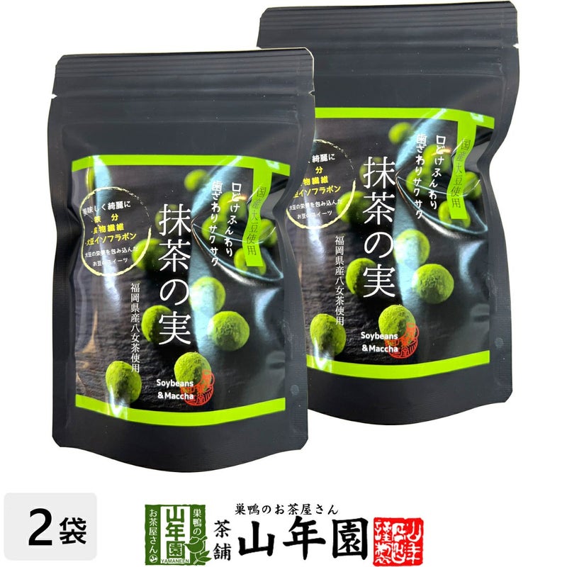 福岡県産八女茶を使用した「抹茶の実」は口どけふんわり、歯ざわりサクサクのお豆のスイーツ。 国産大豆を使用して安心して楽しめる和菓子です。 大豆イソフラボンや鉄分、食物繊維など大豆の栄養を楽しんでください。 老舗のお茶屋がこだわり抜いた「抹茶の実」を是非ご賞味ください。