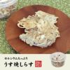国産ちりめん(カタクチイワシの稚魚)に、つなぎ等を一切使用せず、特殊なプレス製法で薄くせんべい状に焼き上げました。 素材にこだわり抜いた「うす焼しらす」を是非ご賞味ください