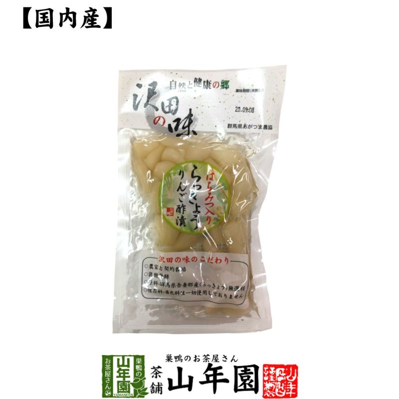 契約農家が栽培した国産の原材料を使用。群馬県産のらっきょうを同じく群馬県産のはちみつを加えたリンゴ酢に漬けました。沢田の自然と実直な農家の人たちが作り上げた、素朴で懐かしい味わい。リンゴ酢でまろやかさに仕上がったらっきょう漬けは、炊き立ての白飯のお供やカレー付け合わせだけでなく、毎日の食卓におすすめです。