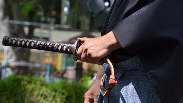 江戸時代の武家茶道のお茶会では、武士たちは腰に刀を差したままお茶をたしなみました。武士は必ず左の腰に刀を差しています。これは、必要があれば右手で刀をつかんですぐにぬけるようにするためです。